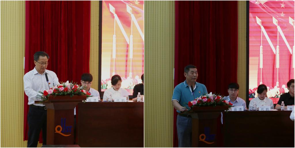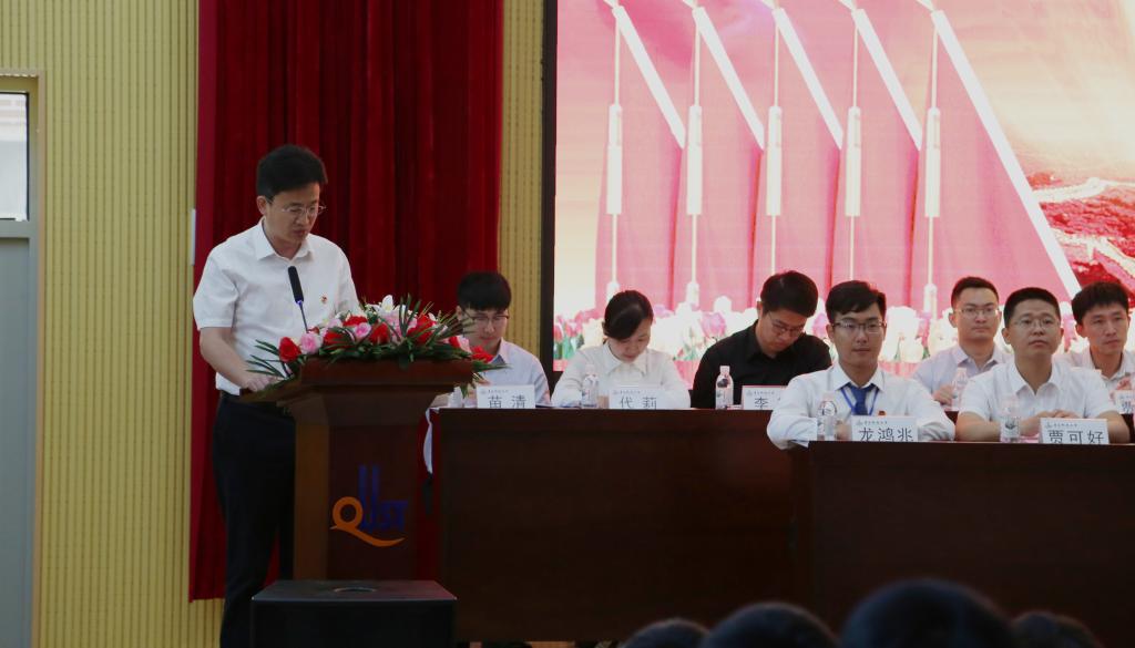 在第一次全体会议中,材料学院分团委书记兼学工办主任李国梁代表共青团青岛科技大学材料学院委员会做了题为《秉承求索精神 服务青年成才 为学院“双一流”建设和改革发展贡献青春力量》的工作报告。他总结了材料学院共青团过去几年在思想政治教育、团学组织建设、创新创业工作、社会实践和青年志愿者服务等四个方面取得的优秀成绩,并阐述了今后学院共青团工作的具体思路与展望。学生会主席龙鸿兆代表学院学生委员会向大会做工作报告,以“坚定信念跟党走 奋发图强担使命”为主题,进行了一系列工作回顾,同时提出了在今后的一段时期学生会将着力加强思想政治引领工作、进一步明确组织定位与职能等的工作规划和展望。