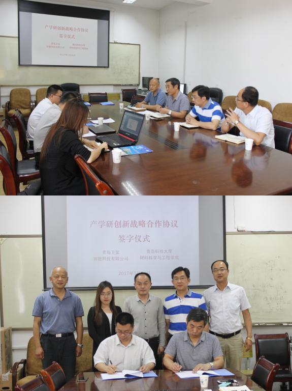 5月26日,青岛卫玺智能科技有限公司副总经理张军伟一行来校,与材料学院就进一步深化产学研合作进行了沟通洽谈。材料学院院长杜芳林、副院长于立岩、党总支副书记高继宏出席了签约仪式,杜芳林代表学院与企业签订了产学研创新战略合作协议。