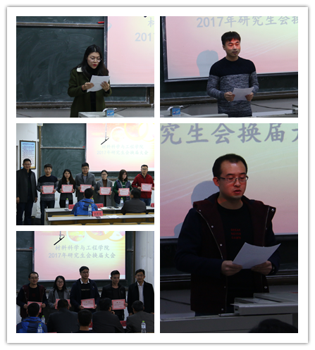 11月28日下午3点,材料学院2017年研究生会换届大会在一号教学楼103教室举行。院长杜芳林、党总支书记王培山等学院领导、校研究生会主席惠保鑫出席大会。学院16、17级研究生全体参加大会。